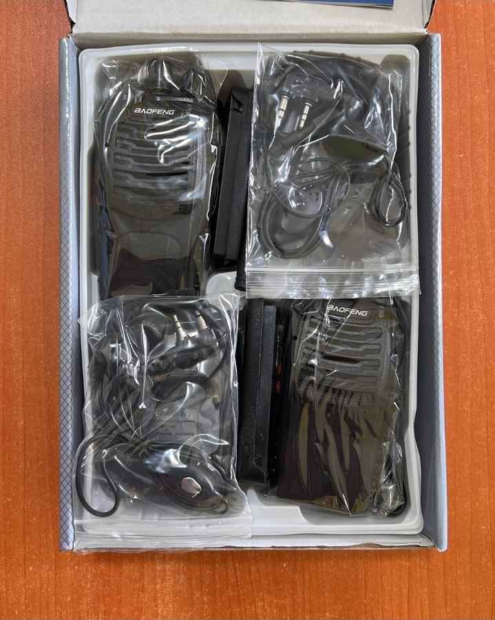 Baofeng 3km range walkie talkie radios ideal for commercial and domestic use on farms, mines, workshops, security services etc Description Functions: 1. Frequency: 400-470MHz 2. 16 channels 3. 1500mAh Li-ion battery 4. 50 CTCSS/105 CDCSS 5. VOX Function (Need to use VOX earpieces, our product have not include the VOX earpieces. Please kindly note.) 6. Voice Prompt 7. PC Programming 8. Emergency Alarm (You can turn it on using Channel 11) 9. Intelligent Charging 10. Battery Save 11. Low Voltage Alert 12. Time-out Timer 13. Flash Light Specifications: Frequency Range: UHF 400-470MHz RF Rated Power: ? 5W Channel Capacity: 16 Operated Voltage: 3.7 V Battery: 1500MAh Li-ion Frequency Stability :2.5ppm Dimensions (LxWxH) (with battery, without antenna): 60x33x115mm Communication Range: 1-3 km