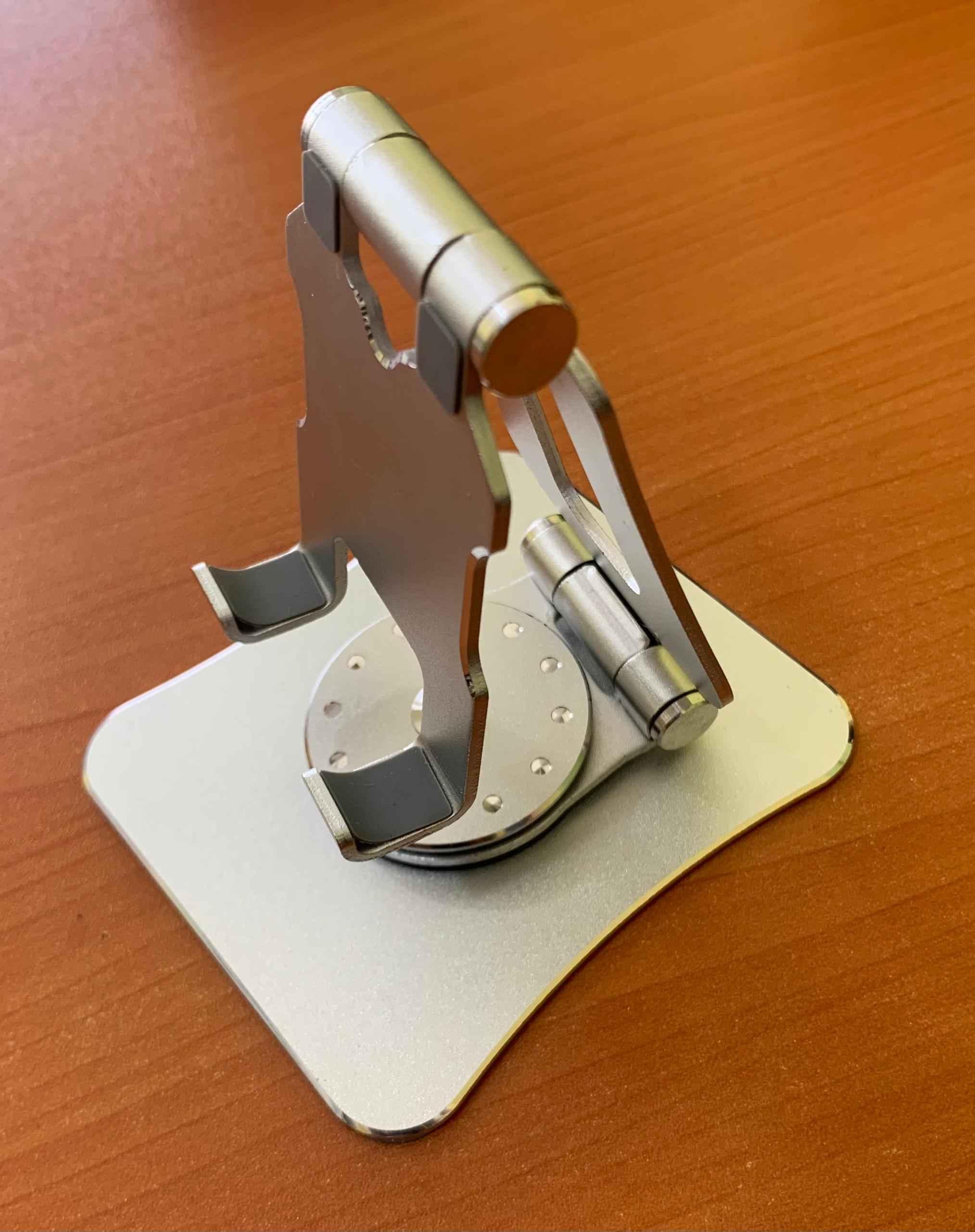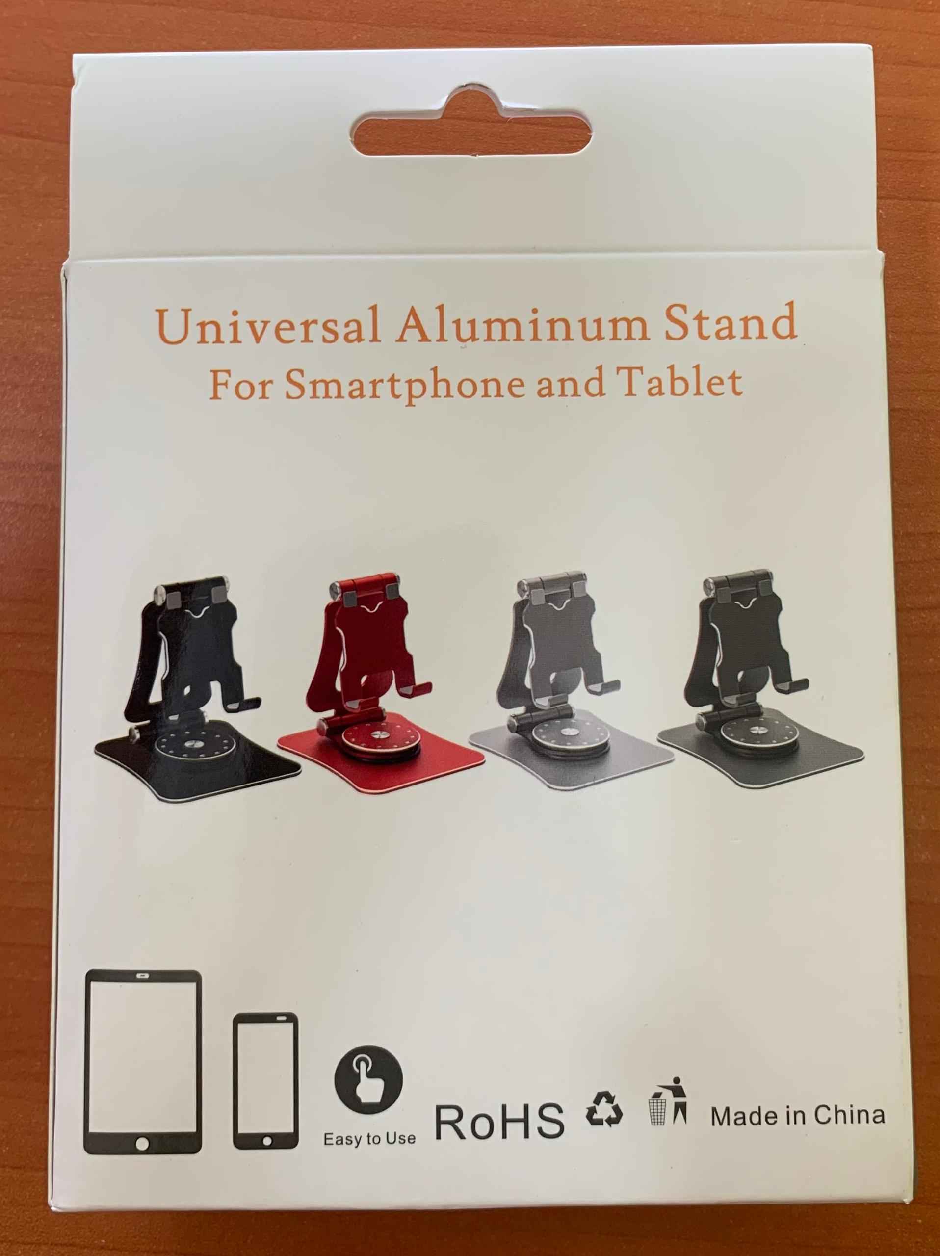 Universal aluminum stand for smartphone and tablet. 360° rotation, flexible angles for sharing screen. Wide application: home, work & leisure. Fold stand, durable design, adjust & hold firmly