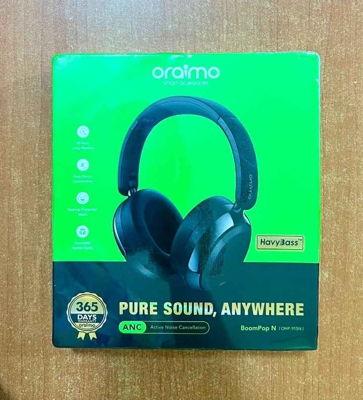 Product Parameters: Connectivity: Bluetooth 5.4 and 3.5mm AUX cable Bluetooth Range: ?10m Speaker Diameter: 40mm Playtime (under Bluetooth Mode): Up to 65 hours (ANC Off), Up to 44 hours (ANC On) Charging Port: Type-C Charging Time: Approx. 2 hours Advanced hybrid noise cancellation technology effectively reduces ambient noise, letting you focus on your music, calls, or work without distractions. Feel the power of enhanced bass with every beat. The Bass Boost technology delivers a deeper, more immersive sound experience, bringing your music to life with rich low-end tones for a fuller, more dynamic listening experience. Enjoy up to 65 hours of playtime on a single charge under Bluetooth mode, keeping your music going for days without interruption. Anywhere Equipped with dual-mic Environmental Noise Cancellation (ENC), oraimo BoomPop N accurately captures your voice while filtering out background noise, ensuring crystal-clear calls even in noisy environments.